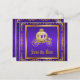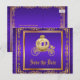 Cartões-postais salve a data roxos e dourados com uma linda carruagem dourada em um fundo roxo e dourado. Você pode adicionar os detalhes do seu evento no estilo de fonte e cor de sua escolha.