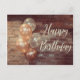 Este cartão postal divertido é uma imagem de balões dourados rosados com um fundo de tijolos. E diz Feliz Aniversário!