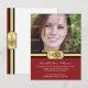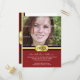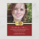 Um anúncio de graduação em um formato simples de cartão postal que certamente será lembrado. Sua foto do formando é colocada acima de uma fivela de ouro contendo o ano de graduação. Todas as impressões de informação personalizadas contra um fundo elegante de pínstripe burgundy. A parte traseira repete o gráfico de fivela de fecho na parte superior com o nome do formando ou qualquer outro dentro de texto Disponível em cores alternativas com produtos correspondentes.