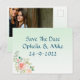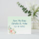 Cartão postal de salvar a data floral elegante em hortelã, envie para seus amigos para salvar sua grande data e deseja boa sorte, você pode colocar uma boa foto para você como casal, mostrando a todos como você é feliz, o design é simples e elegante e fácil de usar