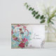 Elegante, sofisticado, vibrante e clássico design floral. Rosas vermelhas, rosadas, flores azuis com uma pomba branca carregando uma carta em uma paisagem marinha. Elaboração gráfica digital em estilo vintage por Bulgan Lumini (c). Fácil de personalizar com seu próprio texto como cartão de anúncio / cartões de lugar / cartões save-the-date / cartões de agradecimento /, chuveiros de noiva, aniversários, festas, chuveiros de noivado, ou qualquer evento que você desejar!