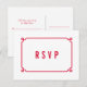 Convite Cartão postal RSVP de Casamento Chic Red Deco