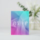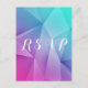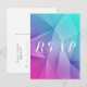 Resposta de Casamento com Tons de Joias Nítidos e modernos Cartão postal com um fundo de triângulo geométrico multicolor (azul, roxo, rosa e turquesa). Esta design é uma escolha única para um casamento moderno. Fácil de personalizar com seus detalhes de casamento. Clique em "Personalizar" para encontrar mais opções de personalização.