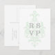 Convite Cartão postal RSVP de Casamento tema damasco Verde
