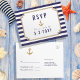 Personalize este Cartão-postal de resposta RSVP de Casamento Náutico moderno na moda. Design azul e branco listrado, definido como um modelo para uma fácil personalização. Convocação de casamento, Cartão RSVP com opção de refeição, Cartão de Programa, Cartões de Direção, Chá de panela, Convite de Janto de ensaio e Cartões de marca de agradecimento e Adesivos de favoritos podem ser encontrados em uma Coleção de Casamentos Náuticos de Na moda.