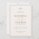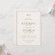 HARMONIA | Convocação de Casamento Moderno Minimalista Terracotta. Recursos, layout moderno minimalista de design de tipografia com detalhes de ilustração de um monograma de ramo delicado.