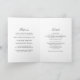 Convite dobrado clássico de casamento, com seu monograma no topo junto com seus nomes em um roteiro elegante e os detalhes restantes em uma fonte serif tradicional.