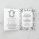 Surpreenda seus convidados com este convite de casamento elegante com uma bela crista vitoriana com padrão de chinoiserie intrincado e código QR para RSVP online. Basta adicionar os detalhes do seu evento neste modelo fácil de usar para torná-lo um convite único.