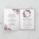 Surpreenda seus convidados com este convite de casamento elegante e completo, apresentando belas flores roxas discretas e tipografia moderna com Código QR para RSVP online.