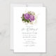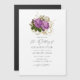 Convite de casamento floral shabby-chic, roxo e dourado, projetado para ser rápida e facilmente personalizado de acordo com as especificações de seu evento.