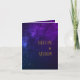 Douradas manchas astrais, dando a impressão de estrelas no céu, brilham acima das palavras sobre um fundo roxo. Um tema moderno para um convite de casamento na moda. Altere facilmente as informações para o seu próprio design personalizado. Substitua a imagem por sua própria foto.