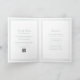 Um convite dobrado para casamento elegante com um design simples e clássico.