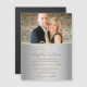 Simples, elegante, mínimo, convite para casamento de cinzas metálicas de prata com coração de corda de ouro e foto de casal.