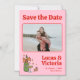Convite Casamento de Foto Whimsical Retro Rosa Salve a Dat