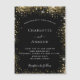 Um convite de casamento magnético moderno e elegante. Fundo preto decorado com brilhos dourados falsos. Personalize e adicione seus nomes e detalhes do casamento. Letras brancas coloridas.