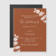 Fundo laranja escuro queimado, decorado com caules de eucalipto, galhos. Personalize e adicione seus nomes e detalhes. Fundo: fundo laranja escuro queimado.