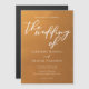 Este convite de casamento magnético de ouro rústico apresenta uma elegante tipografia branca sobreposta num gradiente de tons de terra subestimado. Este simples ímã laranja claro e marrom segue as atuais tendências de queda para um casamento boêmico neste outono. Conclua o olhar com seu roteiro minimalista.