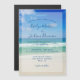 Este belo convite magnético de casamento na praia mostra uma linda foto das ondas do oceano para um casamento de destino. Fotografia bonito na praia, combinada com a moderna tipografia azul, cria um convite chic e moderno para um evento em ilha tropical.