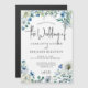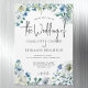 Flores brancas e alegres e folhas verdes de aquarela formam uma bela fronteira neste bonito convite de casamento floral magnético de primavera. Um guião chic, moderno manuscrito com um guião elegante de cinza para o seu casamento no jardim.