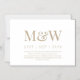 Convite Casamento Dourado de Monograma Branco Moderno