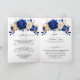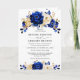 Elegante tema ouro azul real Convite para casamento com elegante buquê de azul real, Marinho, ouro, flores amarelas do rosa e folhas de eucalipto. Entre em contato comigo para obter ajuda sobre a personalização ou se você precisar de outro produto com este design.