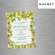 Um fundo verde de cor aquosa. Decorado com limões amarelos e folhagem verde. Personalize e adicione seus nomes e detalhes. O nome é escrito com um script de estilo manuscrito.
