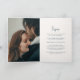 Convite dobrado de casamento elegante com um design simples e clássico com seus nomes em um roteiro moderno e seus detalhes de evento em uma combinação de fontes tradicionais serif e itálico.