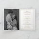 O estilo clássico é um convite de casamento dobrado em ouro com uma design simples e mínima com seu monograma no topo e seus detalhes de evento cercados por uma dupla borda. As fontes se alternam entre um script elegante, um serif tradicional e fontes sans serif minimalistas. O dentro tem sua foto favorita à esquerda e seus detalhes de hóspedes à direita. As costas têm mais duas seções para a sua história de amor ou mais detalhes para os seus convidados. Este convite de casamento dobrado é excelente para um casamento formal.