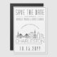 Um convite de "salve a data" magnético em estilo deco único para um casamento que ocorrerá na bela cidade de Charleston, Carolina do Sul. Este convite apresenta uma ilustração estilizada da silhueta única da cidade com seu nome abaixo. Isso é seguido pelas informações do seu dia de casamento em um estilo de linha aberta correspondente. Por funcionar como um ímã de geladeira, é uma ótima maneira de lembrar e entusiasmar seus convidados para a sua futura viagem ao destino do seu casamento na cidade. Todos os elementos individuais do convite estão desbloqueados, então sinta-se à vontade para alterar quaisquer detalhes necessários, como tamanhos de fonte, estilos e muito mais, usando a função de personalização. Divirta-se sendo criativo!