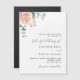 Um fundo branco chic. Decorados com folhas de eucalipto florais, verdes e de cor rosa, de cor aquosa, de galhardetes, de verde e de ouro falso. Personalize e adicione seus nomes e detalhes do casamento. Letras negras.