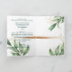 Este convite de casamento é perfeito para um casamento simples e elegante ao ar livre. O design floral apresenta a Pintura em Aquarela Verde no Mar Profundo e as folhas de aquarela e o Texto a cores Dourado. Salve o papel, incluindo os detalhes na parte traseira do convite de casamento, em vez de em um cartão de cercado separado.