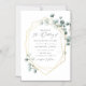 Convite de casamento magnético geométrico de eucalipto verde com estrutura geométrica dourada.