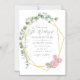 Trendy geométrico eucalipto verde e rosas cor-de-rosa pinceladas convite a casamento magnético com moldura geométrica dourada e lavagem com aquarela de menta inversa.