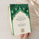Invistam seus convidados com este elegante tudo em um convite de casamento indiano com belos arcos decorados com cortinas e lanternas penduradas. Tipografia de ouro moderna com código QR para RSVP online. Basta adicionar os detalhes do seu evento neste modelo fácil de usar e enfeitar este cartão com a sua foto favorita para torná-lo um convite único.