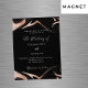 Um fundo negro. Decorado com veias rosa de mármore. Personalize e adicione seus nomes e detalhes da festa. Texto branco.