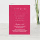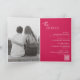 O convite de casamento cor-de-rosa moderno Viva Magenta, que apresenta um design simples e mínimo com o nome da noiva em um roteiro elegante e o nome do noivo em uma fonte sans serif contemporânea. Abaixo, no canto inferior direito, estão os detalhes do evento em um layout minimalista. O dentro tem a sua foto favorita e os seus detalhes adicionais, incluindo um código QR opcional (se preferir, o código QR pode ser removido na ferramenta de edição de design). A parte traseira tem mais duas seções opcionais para obter mais informações.