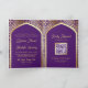 Encontrem seus convidados com isso tudo em um convite dobrado para casamento apresentando um arco elegante contra um padrão persa com código QR para RSVP online. Basta adicionar os detalhes do seu evento neste modelo fácil de usar para torná-lo um convite de tipo único.