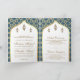 Encontrem seus convidados com este convite de casamento dobrado ao estilo islâmico, com um elegante padrão geométrico e o 'Bismillah' na caligrafia árabe com o Código QR para RSVP online. Basta adicionar os detalhes do seu evento neste modelo fácil de usar para torná-lo um convite de tipo único.