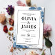Convite Casamento Romântico Azul Floral, Casamento Elegant