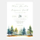 Celebre seu dia especial com este elegante convite de casamento com tema de floresta apresentando uma ilustração de cor d'água macia de árvores verdes. A paisagem serena do pinheiro estabelece um tom rústico, inspirado na natureza, perfeito para um casamento ao ar livre ou em floresta. O layout minimalista apresenta a tipografia moderna com delicados acentos de escrita, fornecendo um toque eterno e romântico. Os detalhes personalizáveis incluem os nomes do casal, a data do casamento, a hora e o local. Ideal para casais planejando um casamento de outono ou floresta com uma vibração tranquila e suja.
