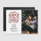 O perfeito é salvar a data do cartão magnético com seu conjunto de fotos ao lado da caligrafia escrita à mão, embelezada com botânicos rústicos em vermelho profundo. Simples e clássico, porém divertido e moderno - coordena lindamente com tantos dos atuais estilos de casamento.