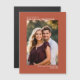Esses cartões salve a data magnéticos apresentam um simples design minimalista moderno com sua foto cercada por um texto simples contendo todas as informações importantes sobre um belo terracota ou fundo cor de laranja vermelho-argila. Uma maneira maravilhosa de deixar seus amigos e família saberem sobre seu próximo casamento. A placa é projetada com uma orientação vertical para uma foto orientada a retratos.
