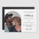 Um convite para casamento de fotos Na frente: adicione sua própria foto vertical. Um fundo branco chic, texto preto. Personalize e adicione seus nomes e detalhes.