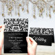 Convites para Casamento Bidirecional de Elegância Negra e Branca. Inclui RSVP ou pode alterar o texto Informações de RSVP para mostrar um local e hora de recepção diferentes. Cartões de resposta RSVP Real de Casamento tema damasco Preto Mostrados com a bela cor de papel mostrando qual é o sentido - você escolhe a cor de fundo de quase 200 cores e documentos que alteram as cores, então clique em personalizar e crie o seu convite gentil! mostrado com fontes de coral e lilás - você escolhe cores em fontes - se quiser um acabamento brilhante (brilhante apenas no lado frontal) pedido básico, linhado ou papéis metálicos - para um reciclado de acabamento mate, feltrados ou manchados. Floral a preto-e-branco com Reciclado cor-de-rosa - Este cobrir de peso de 100 lb tem tom quente e um acabamento suave. Feita com 100% de conteúdo poste de reciclados para o consumidor. Uma escolha ecológica para todos os seus convites e anúncios
