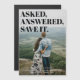 O magnético perfeito salvou a data de um casal com uma fotografia de noivado vertical, que apresenta uma camada de texto preto, ligeiramente viscoso, com uma forte estética tipográfica. Se você precisar de maior controle de personalização para remover o gradiente de escurecimento de fotos na frente ou ajustar o tipo, clique no link personalizar mais abaixo das imagens de modelo.