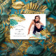 Cartões magnéticos de salva a data de casamento tropical em turquesa e dourado com detalhes em folha metálica, projetados para serem personalizados rápida e facilmente de acordo com os detalhes do seu evento.