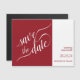 Esses cartões salve a data são simples, modernos, minimalistas e elegantes. Eles apresentam um design de dois painéis contemporâneos. O painel vermelho do cremson à esquerda tem uma caligrafia de script que lê "salvar a data". O painel à direita tem seus nomes, a data do casamento e a localização em um layout justificável para a tendência. Belo jeito de ajudar seus amigos e família a se lembrarem do dia especial que vem.