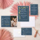 Este elegante convite de casamento com sotaques vitorianos é perfeito para casais que buscam destacar o contraste de cor do eterno em seu esquema de cores. Os detalhes do seu evento são mostrados em fontes elegantes ao lado de um ornamento vitoriano opulente com bestas intrincadas de videiras e um ousado pano de fundo azul-marinho. Como o gosto de uma bebida nova e deliciosa, seus convites elegantes de casamento podem dar uma doce e duradoura impressão. Este convite é excelente para um casamento formal. O estilo e a cor das fontes podem ser alterados para qualquer estilo e cor desejados clicando no botão "personalizar". As imagens traseiras e os cantos dentro são removíveis.