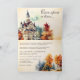Surpreenda seus convidados com este convite de casamento tema conto de fadas rústico com um belo castelo antigo em um fundo de pergaminho rústico com Código QR para RSVP online.