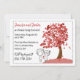 Convite de casamento bonito feito em um tema casual, com um menino e uma menina de desenho animado parados sob uma árvore de folha de coração vermelha, contra um fundo branco. A costura preta à volta da borda faz um olhar casual divertido. Personalize o texto para atender às suas necessidades de casamento.